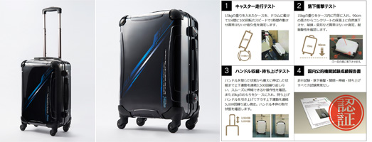 主な仕様:ハードスーツケース、フレーム式、4輪キャスター、
