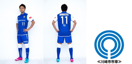 ユニフォーム全体に川崎市市章を散りばめており、背中の1か所だけ「川崎市の形」と「ふろん太」をモチーフにしたマークが入っています。