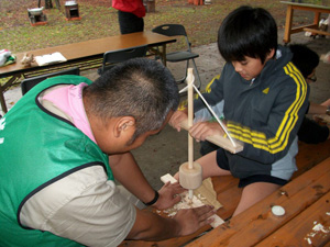 できるとは知っているもののなかなか挑戦した経験のある方は少ない火起こし体験。今回は設定時間内に煙が出ればクリアということで、見事設定時間内に達成した方には日本ボーイスカウト連盟より提供のボーイスカウトグッズをプレゼント!