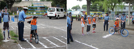 自転車事故防止の啓発として警察官が安全運転指導します。