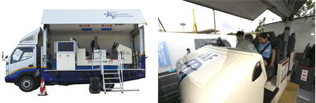 ここではエアバッグシミュレーターを用いてシートベルトが命綱であることを納得することができます。
