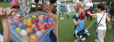 スーパーボールすくいやヨーヨー釣り、さらに射的やわなげ等夏まつりらしいアトラクションに加え、川崎新田ボクシングジムのプロボクサーによる無料ミット打ち体験や吉本興業鷺沼芸人と対決コーナーをお楽しみください。