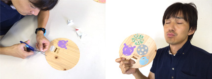 ◇自分だけのエコ団扇を作ろう 間伐材に切り絵を貼って自分だけのエコ団扇を完成させよう!あおぐと木のいい香りがするよ!