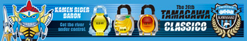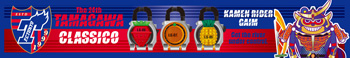 当日は、多摩川クラシコ開催を記念して第23回多摩川クラシコに引き続き「仮面ライダー鎧武/ガイム」とコラボレートしたプロモーションを展開。バナナをモチーフにした仮面ライダーバロンが来場し、バナナ推しのクラブ・川崎フロンターレにエールを送ります。