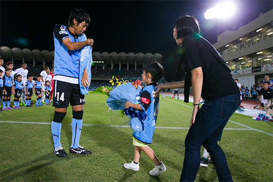 8月30日(日)2014 J1リーグ第22節名古屋グランパス戦にて、中村憲剛選手がJ1リーグ通算300試合出場を達成しました。J1通算300試合出場達成は、Jリーグ史上72人目となる快挙です。