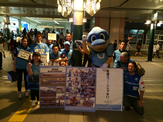 本日、9月25日に武蔵小杉駅で行われる街頭募金活動に、宮城教育大学附属中学校の生徒4名と引率の先生が参加します。宮城県も東日本大震災によって大きな被害を受けました。その被災者である生徒たちが「Mind-1ニッポンプロジェクトの話を聞きたい」と学校の総合学習の一環としてフロンターレを訪問してくれることになりました。本日はその学習のひとつとして街頭募金を一緒に行ないます。ぜひ生徒たちに会いに来てください。