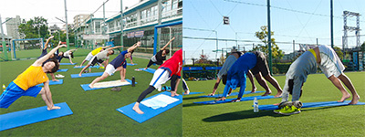 フロンタウンさぎぬまでは、毎週土曜日の朝、男性向けのヨガ教室を開催しております。深い呼吸をしながらヨガポーズをとることで血流がよくなり体の柔軟性を高め、スポーツ中のケガを予防することができます。