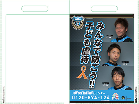 | ◆配布日時・配布場所 11月29日(土) サンフレッチェ広島戦 スタジアムホーム側7番・10番ゲートにて配布 ◆配布枚数 計5,000部 ◆製作 川崎市市民・こども局こども本部 ◆協力 川崎フロンターレ ◆起用選手 FW11 小林悠 FW13 大久保嘉人 MF14 中村憲剛 |