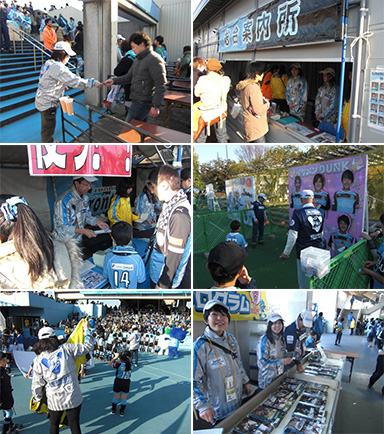 | スタジアム | ・入場ゲートでのチケットもぎり、チラシ配布 ・総合案内所、運営本部運営補助 ・VIP、報道、関係者受付対応 ・場外イベント運営補助 ・フェアプレーキッズ対応 ・マッチデープログラム販売 ・後援会ブース運営補助 など |