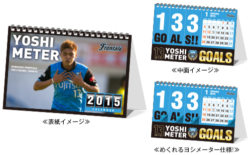 2013シーズンの得点王メモリアルグッズで大人気だった「卓上ヨシメーター」が、2015シーズン版で販売します。もちろん今回もカレンダー機能を兼ね備えた特別仕様となります。ご自宅で!オフィスで!みんなで一緒にヨシトのゴールを刻みましょう。