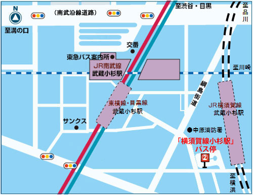 JR武蔵小杉駅横須賀線口バスターミナル2番乗り場(「横須賀線小杉駅」バス停)