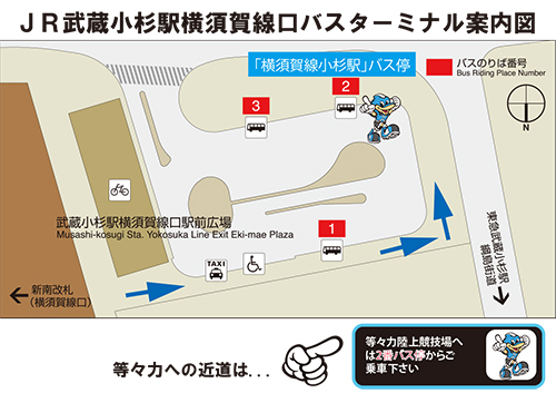 ※JR武蔵小杉駅北口からの直行臨時バス乗降場所とは異なりますので、ご注意ください!