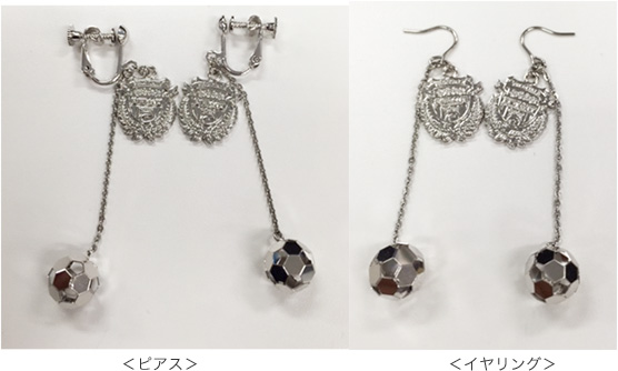 女性サポーターからのご要望が多かったピアスとイヤリングが登場です。エンブレムとサッカーボールのチャームが揺れるので、キラキラ光ってとても可愛いです。応援の時はもちろん、普段使いにも最適です。