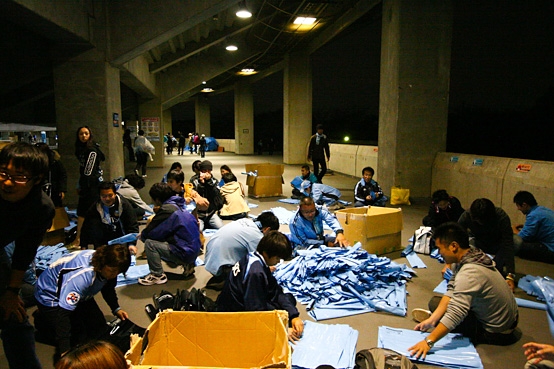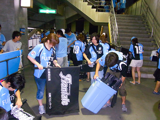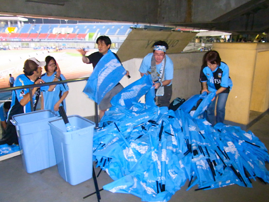 試合終了後に使用したカラーパネル・フラッグを試合終了後に回収・片付け作業を行います。こちらのご協力もよろしくお願い致します。