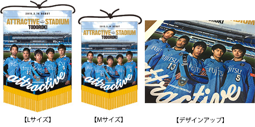 タペストリーの形状に合わせた選手写真と、2015 SEASON キャッチフレーズである“ATTRACTIVE”が大きく配置されているのが特徴的なデザイン。サイズも2パターンあり、飾る場所に合わせ選択可能。