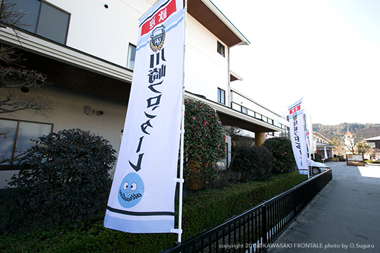 川崎フロンターレでは、2015シーズンに向けてのトレーニングキャンプを実施しておりましたが、宿泊先である宮崎県綾町の「酒泉の杜」様のご厚意で、施設内に設置されていた2015シーズンのキャッチフレーズが入った「のぼり旗」に、キャンプ参加の全選手のサインを、また、関連施設である「綾自然蔵見学館」エントラスホールに掲示していた「パネル」にサインを入れてプレゼントすることとなりましたのでお知らせいたします。
