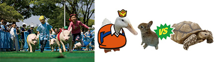 第3かけっこ:カメvsウサギがそれぞれかけっこをします。 |