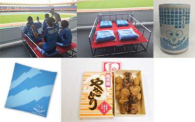 なんと等々力陸上競技場にマス席が登場!かなり広めの作りになっており、4人でも狭さを感じさせません。試合後は使用した座布団をそのままお持ち帰りOK。ほかにもこの日限定で販売する「やきとり」、「湯呑」もおみやげとしてついてきちゃいます!この日の取組、いや試合がさらに思い出深いものになること間違いなしのスペシャルシートです。