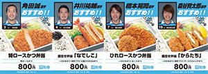 ◇選手セレクト弁当:各800円 ◇謹製ひれ勝つサンド(レギュラー):600円 |