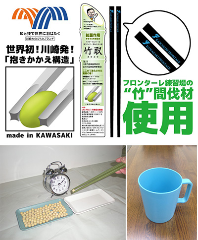 川崎ものづくりブランドに認定されている川崎市中原区にあるユニオン産業さんの植物原料を使用し、環境にやさしい原料「UNI-PELE」で作られたすべりにくい箸をフロンターレデザインで販売します!その滑りにくい箸で大豆はさみゲームを実施します。