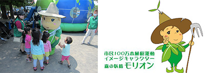 川崎市では市制100周年を迎える平成36年に向けて、「緑のミリオンムーブメント」をスローガンに、市民100万本植樹運動を推進中です。川崎を緑でいっぱいにするためにがんばっているモリオンに、ぜひ会いに来てください。