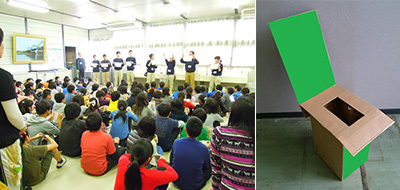 | 内容 | ◇エコライフをゲーム(環境すごろく)で楽しみながら学んでもらう。 ◇川崎市の環境 今・昔と題し、川崎市の環境の移り変わりを冊子や数枚のパネルで知ってもらう。 |
