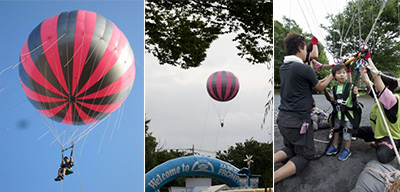 熱気球のように火を使わず、ヘリウムガスの入った大型バルーンで空中遊泳が楽しめます!
