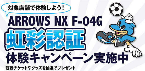 6月20日(土)松本山雅FC戦「ARROWSエキサイトマッチ」を記念して、ARROWS NX F-04G「光彩認証」体験キャンペーンを実施いたします。ぜひこの機会に最先端の「虹彩認証」を体験して、プレゼントにご応募ください。