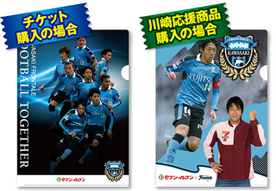 | 実施内容 | ◆その1 セブン-イレブンで川崎フロンターレ戦のチケット、もしくは川崎応援商品をお買い上げのお客様にその場でオリジナルクリアファイルをプレゼント! ※数量限定となります。景品が無くなり次第終了となります。詳しくは店員にご確認ください。 ![]() ◆その2 川崎応援商品を買うと付いてくる抽選券(レシート)と、セブン-イレブンで発券された7/11(土)vsFC東京のチケットもしくは2015川崎フロンターレシーズンチケットのセットで抽選会に参加できます。 抽選で10/24(土)vs横浜F・マリノスの6階ボックスシート観戦ペアチケットを10名様にプレゼント!(選手との記念撮影付き) 抽選日・抽選会場は7/11(土)vsFC東京 セブン-イレブン エキサイトマッチ時等々力陸上競技場外メインスタンド前広場となります。実施時間は14:30(予定)〜18:30となります。 ※スタジアム開場時間が変更になった場合、開始時間が前倒しになる可能性がございます ※景品が無くなり次第終了となります。