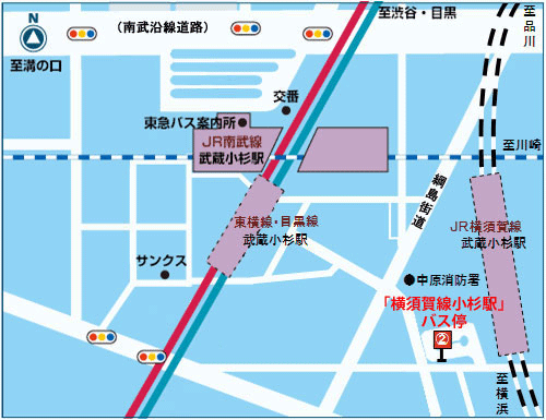 JR武蔵小杉駅横須賀線口バスターミナル2番乗り場(「横須賀線小杉駅」バス停)
