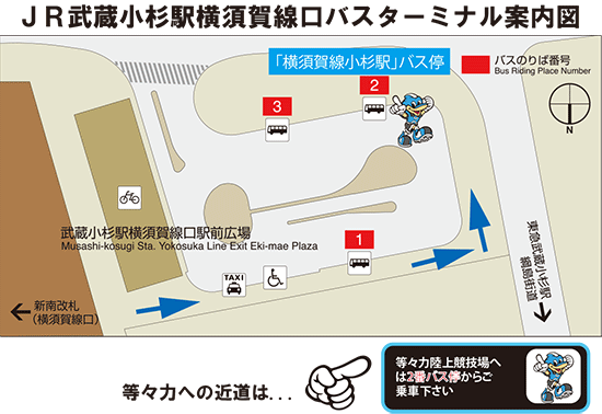 ※JR武蔵小杉駅北口からの直行臨時バス乗降場所とは異なりますので、ご注意ください!