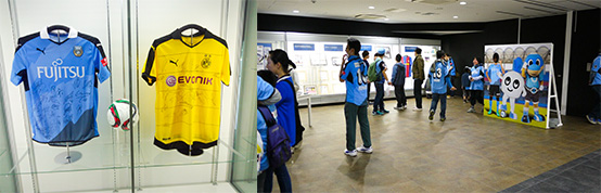 | 内容 | 旧メインスタンドで使われていた選手ロッカーを展示、記念撮影用の顔出しパネルも設置しています。さらに、今年7月にアジアツアーで来日したボルシア・ドルトムントの選手サイン入りユニフォームも展示しています。 また、新メインスタンド工事記録映像の上映、「等々力陸上競技場整備基金」の受付も行っています。 |