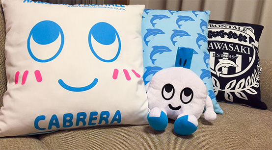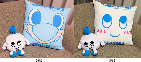 あなたの日常にフロンターレを!!そんな思いから今回はベーシックな形に仕上げたクッションを3種ご用意しました。両面にキュートなふろん太とカブレラを配置した「フロカブver.」などがあります。