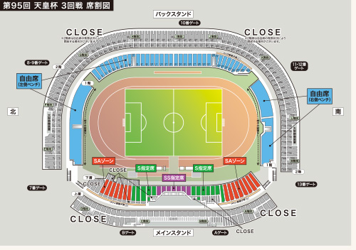 ※サイド・バックスタンドの2階席は「自由席」の発券状況および当日の天候などにより開放する場合がございます。