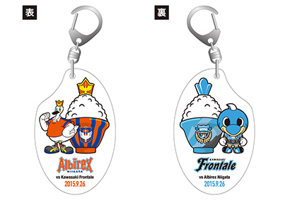 | 実施内容 その1 | 「アルビレックス新潟×川崎フロンターレ」リバーシブルキーホルダー 出張アズネロといえば、コラボグッズ!!今回は米どころ「新潟」への出張販売。そして、川崎フロンターレのオフィシャルスポンサーで米といえば…「ふくしまの米」!!そこで、『米』をテーマにコラボグッズを製作しました。各デザイン「どんぶり飯の頂点」に注目です。
