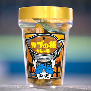 「おつまみシリーズ」に新商品が仲間入り!『カブの種』との商品名でカレー味のカシューナッツです。観戦のお供にも、観戦のお土産にもなりますよ。