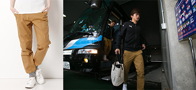 メインスタンド場内総合案内所横(AZZURRO NERO in等々力)グッズ売店では、プーマ商品も取扱い!フロンターレ選手が移動時に着用するモデルや普段着、アクセサリー類などのプーマ商品なども販売しています。