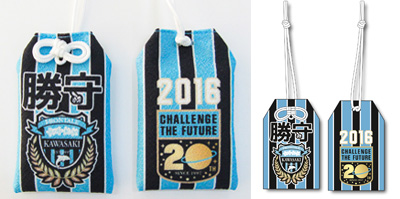 「新体制発表会見」当日発売の定番グッズ“勝守”。デザインは2016シーズンユニフォームをモチーフに、“クラブ創立20周年を記念したロゴ”も盛り込みました。フロンターレの試合日には、“勝守”を身に着けて応援しよう!!