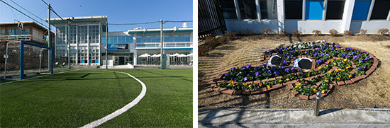 こちらは昨年末より取り換えを実施しましたが、クラブハウス内、フットサルコートの照明設備をLED化しました。照明の明るさはもちろん、以前の水銀灯と比べて水銀を使用していないので環境にも安心です。新しい人工芝や、塗装仕立てのクラブハウス等をよりきれいに映し出してくれます。