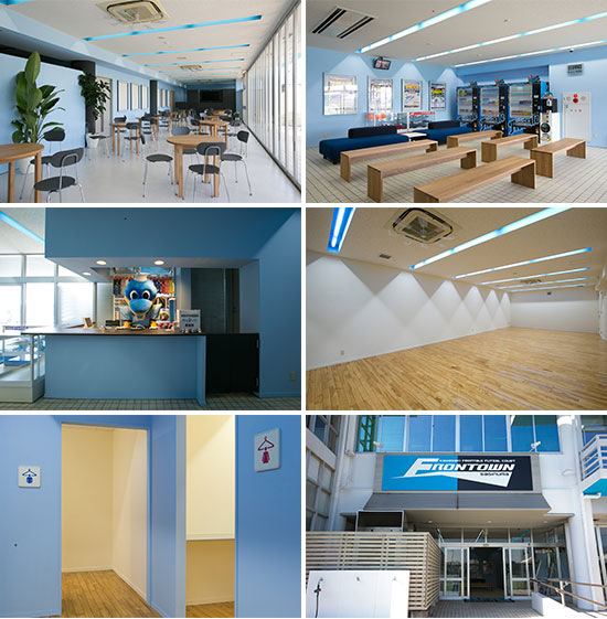 まず施設の壁面を全面塗装いたしました。以前はホワイトとグレーの2色で汚れや手垢が目立ちやすい状況でしたが、今回、ライトブルーとブラックでフロンターレカラーに一新しました。また、更衣室とミーティングルームにはオフホワイトで落ち着きを出しました!!