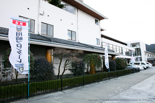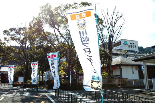 川崎フロンターレでは、2016シーズンに向けてのトレーニングキャンプを実施しておりましたが、宿泊先である宮崎県綾町の「酒泉の杜」様 のご厚意で、施設内に設置されていた2016シーズンのキャッチフレーズが入った「のぼり旗」に、キャンプ参加の全選手のサインを入れてプレゼントすることとなりましたのでお知らせいたします。