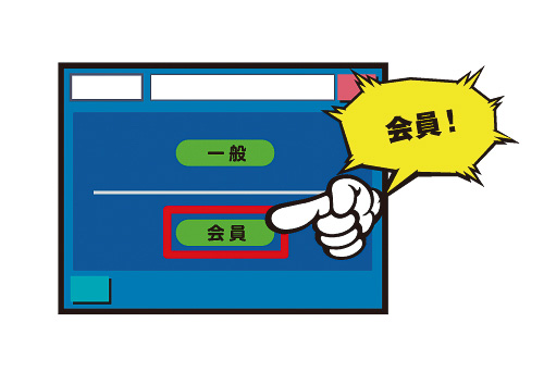 5.「一般」 か 「会員」 かを選ぶ画面では、必ず 「会員」をタッチし引換券番号(券面記載)を入力。