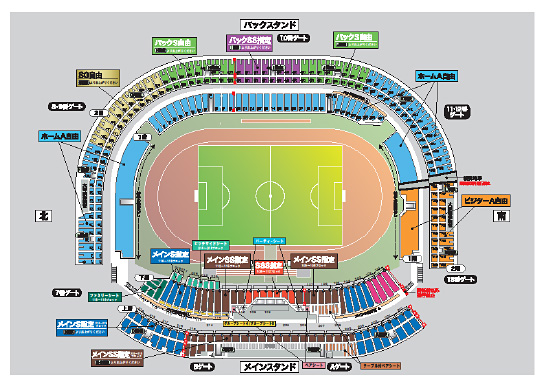 ※バックスタンド側ホームA自由とビジターA自由の緩衝地帯の位置はチケットの販売状況によって変更となる場合がございます。