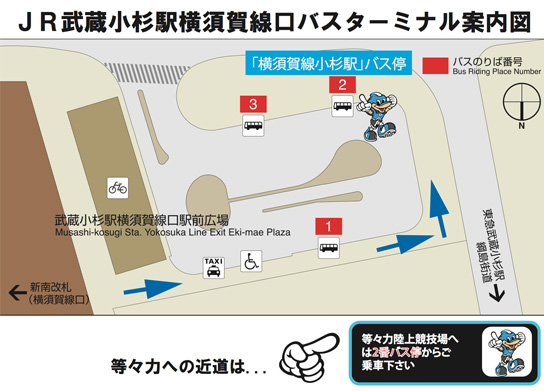 ※JR武蔵小杉駅北口からの直行臨時バス乗降場所とは異なりますので、ご注意ください!