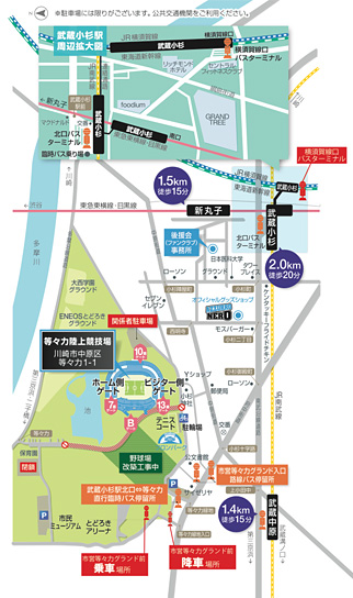川崎フロンターレ主管のホームゲーム開催日において、JR武蔵小杉駅横須賀線口から等々力陸上競技場への直行臨時バス(有料 ※運行:東急バス)が運行されることになりましたので、お知らせいたします。