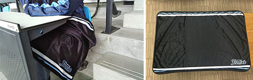 テーブル付ペアシート(上層)にオリジナルブランケットがついてくる企画チケット。寒い日の試合観戦でもブランケットがあれば安心です!!もちろん、ブランケットも1人に1枚ついてきます。