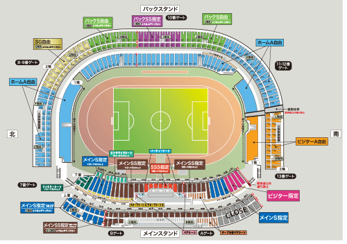 ※メインスタンド上層南側は販売状況により「メインS指定」として販売する場合がございます。