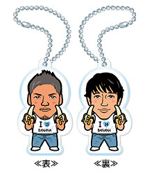 ドールランド開催を記念して、両手にバナナを持ち「I LOVE BANANA」のメッセージTシャツを着たヨシトとケンゴをデザインした特製リバーシブルキーホルダーです。