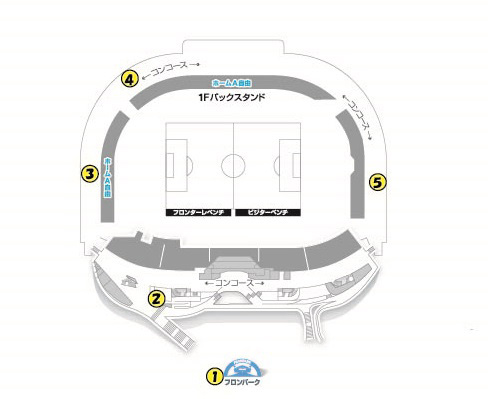 ①等々力陸上競技場外フロンパーク内 ※フロンパーク開園時より