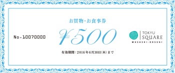 | 賞品 | 1等:武蔵小杉東急スクエアお買物・お食事券30,000円分…3名